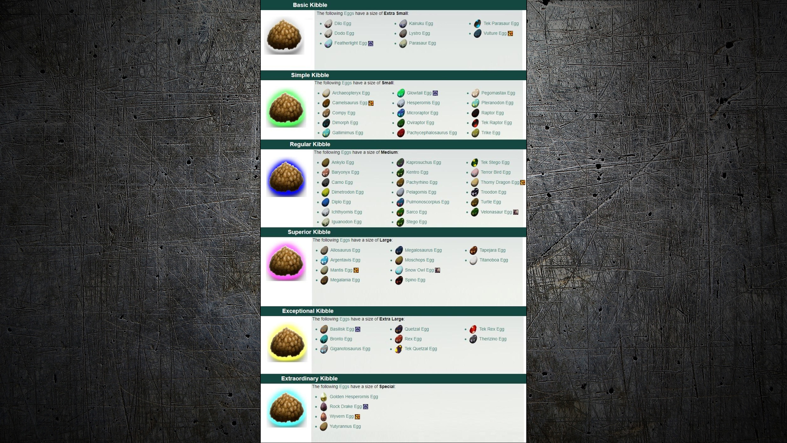 Dino Kibble Recipes Cheatsheet - Ark Survival Evolved