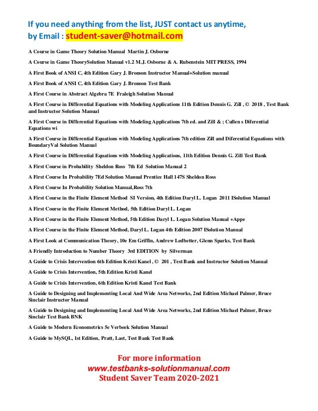 F Ull List Test Bank And Solution Manual 2020 2021 Student Saver Te