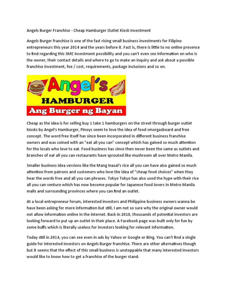 Angels Burger Franchise Pdf Hamburgers Franchising
